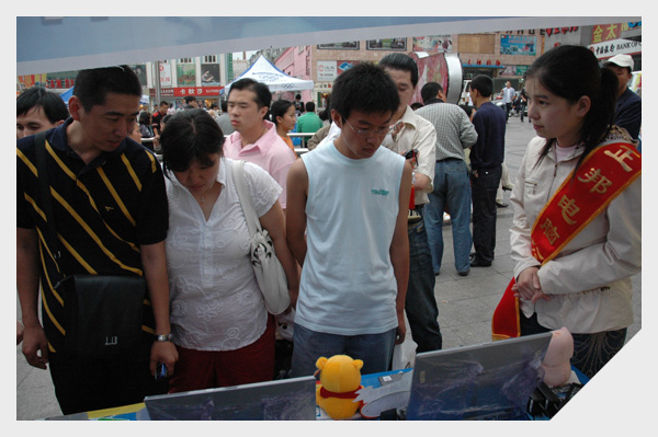 活动现场上我公司的展示、销售产品被络绎不绝的群众团团围住,我公司的工作人员在活动现场耐心地为每一位来访顾客答疑解惑,并对其感兴趣的笔记本电脑的各项功能进行详细介绍,同时技服人员对当地电脑用户进行免费义诊和维修咨询,工作人员以热情而真诚的笑脸迎接所有对联想产品和正邦公司信任的朋友,让他们在正邦不仅仅体会到产品的可靠性,同时更信赖具有优质服务精神的正邦人。