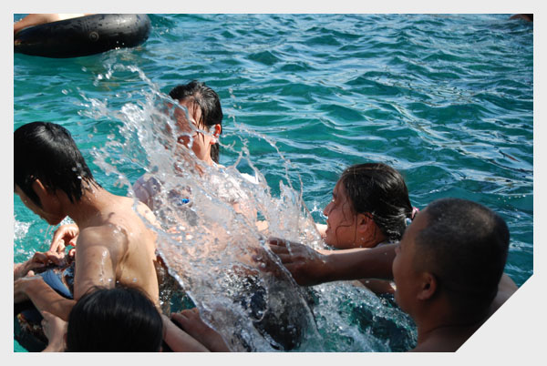 游戏之后,开始用餐,这可是联络感情的好时候,随后游泳、打扑克、打麻将、钓鱼,每个人都在尽情的享受这一天的渡假时光。