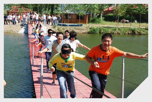 8月25日清晨我们全体员工踏上了去龙泉的汽车,到达目的地后,我们首先进行游戏环节——拔山涉水、心连心、思维开拓游戏、最后是幸福分享。从拔山涉水开始,50名活动参加者两人一组,其中一人用黑布遮住双眼睛,同组另外一人,牵着同伴的手用动作指引伙伴前进的方向,路途中经过草地、陡坡、软桥等坚艰路段最终到达终点。到达终点后开始下一个游戏环节,将所有人都遮住双眼,让众人在一个指定的区域中找出帮助自己走出困境的那双手。通过这两个游戏,我们的员工真正体会到心与心的交融,体会到相互协助的默契,游戏之后,大家极为感动,平日里每一个平凡的面孔,今天终于汇成了生命中的一个亮点。困境中我们相亲相爱共度难关,感动背后我们为自己喝彩!