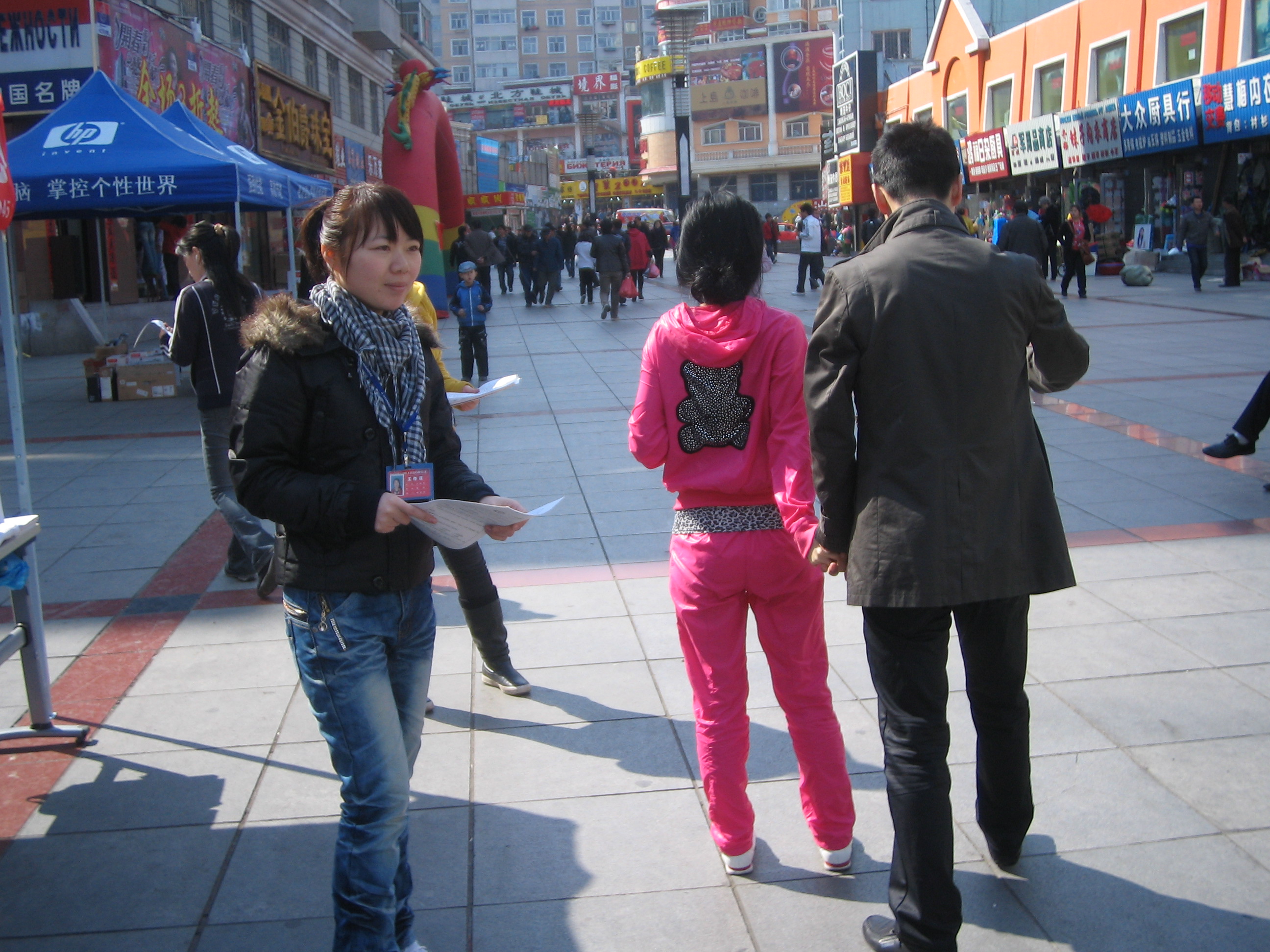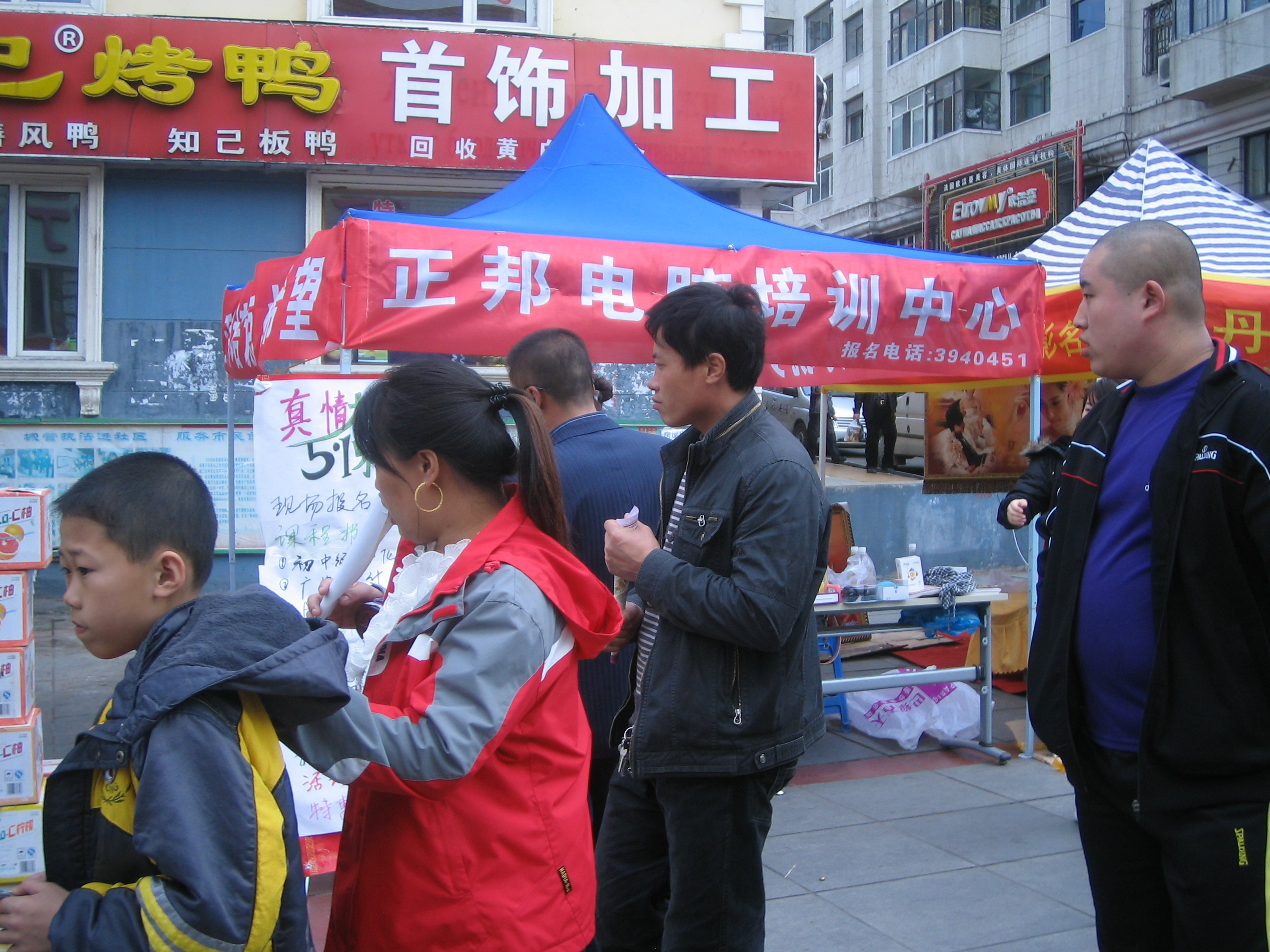 五月一日给寒冷已久的绥芬河市带来一个晴朗温暖的好天气。在这个阳光明媚的日子,绥芬河市多家企业纷纷抓住五一带来的商机,在广场和步行街进行促销活动,我公司也毫不逊色的在步行街举行了培训中心五一招生大优惠的招生宣传活动。