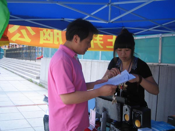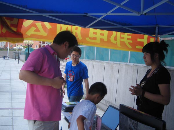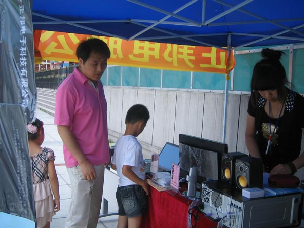 正值暑期,公司的销售部、培训部以及技服部,一起来到绥芬河市西城区B区,进行了一次综合性的活动。活动分为三个部分:一是向广大用户宣传联想家电下乡电脑产品,买联想电脑,将政府补贴13%的优惠政策向用户们宣传;二是培训部针对再就业人员以及下岗失业人员推出了学习电脑知识的优惠活动;三是公司技服部为广大用户义务修理电脑。活动在进行时吸引的部分群众。